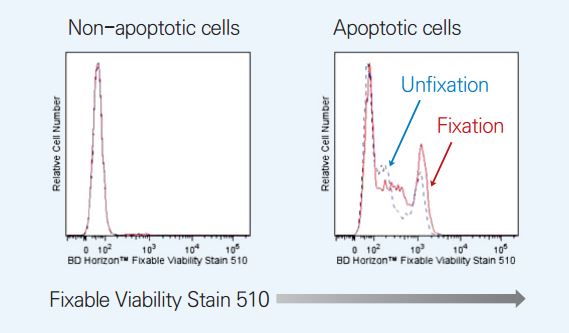 - 세포 표면과 세포 내부의 amine과 공유 결합하여 죽은 세포와 살아 있는 세포의 구별을 쉽게 해 준다